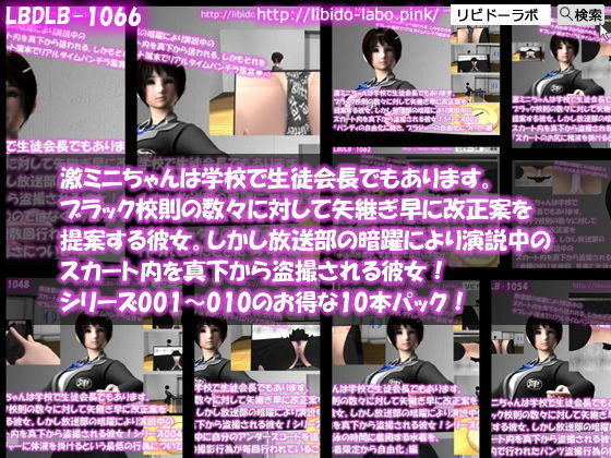 【▼△100】激ミニちゃんは学校で生徒会長でもあります。ブラック校則の数々に対して矢継ぎ早に改正案を提案する彼女。しかし放送部の暗躍により演説中のスカート内を真下から盗撮される彼女!シリーズ001〜010のお得な10本パック!│d_197576のジャンル