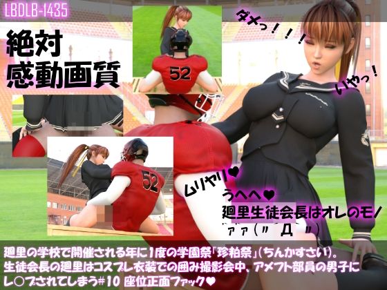 【●100▲100】廻里の学校で開催される年に1度の学園祭『珍粕祭』(ちんかすさい)。生徒会長の廻里はコスプレ衣装での囲み撮影会中、アメフト部員の男子にレ○プされてしまう#10座位で正面ファック編│d_235401