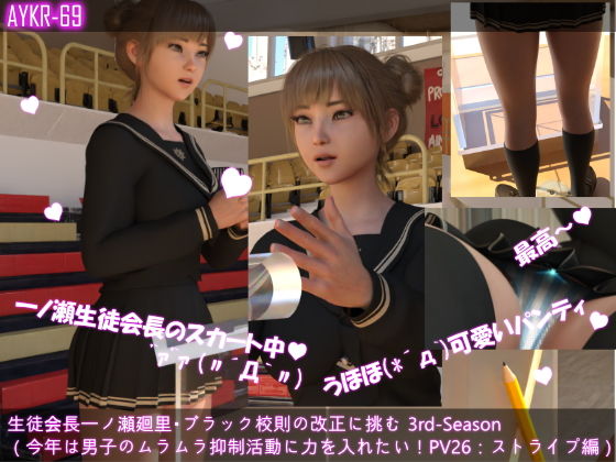 【▲100】生徒会長一ノ瀬廻里・ブラック校則の改正に挑む 3rd-Season(『今年は男子のムラムラ対策に力を入れる!と豪語する廻里の演説』PV26:水色ストライプパンティー│d_511412のジャンル